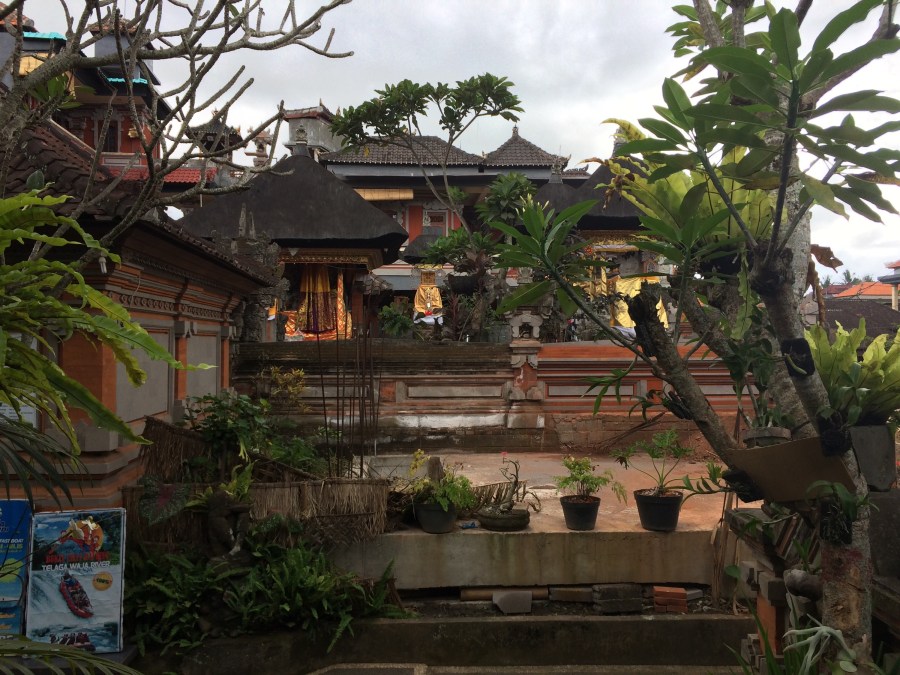 Da quando siamo a Ubud abbiamo visto che tutti i famigliari hanno impiegato la maggior parte del loro tempo ad allestire il tempio. Alla cerimonia erano presenti famigliari, vicini e amici stretti, mentre la funzione veniva celebrata dal prete. Il tempio era decorato con stoffe pregiate, tantissimi frangipane colorati, foglie di palme, riso (che non manca mai!), cocco e altra frutta, dolcetti e una multitudine di incensi che rendevano l’atmosfera mistica dal profumo inebriante.