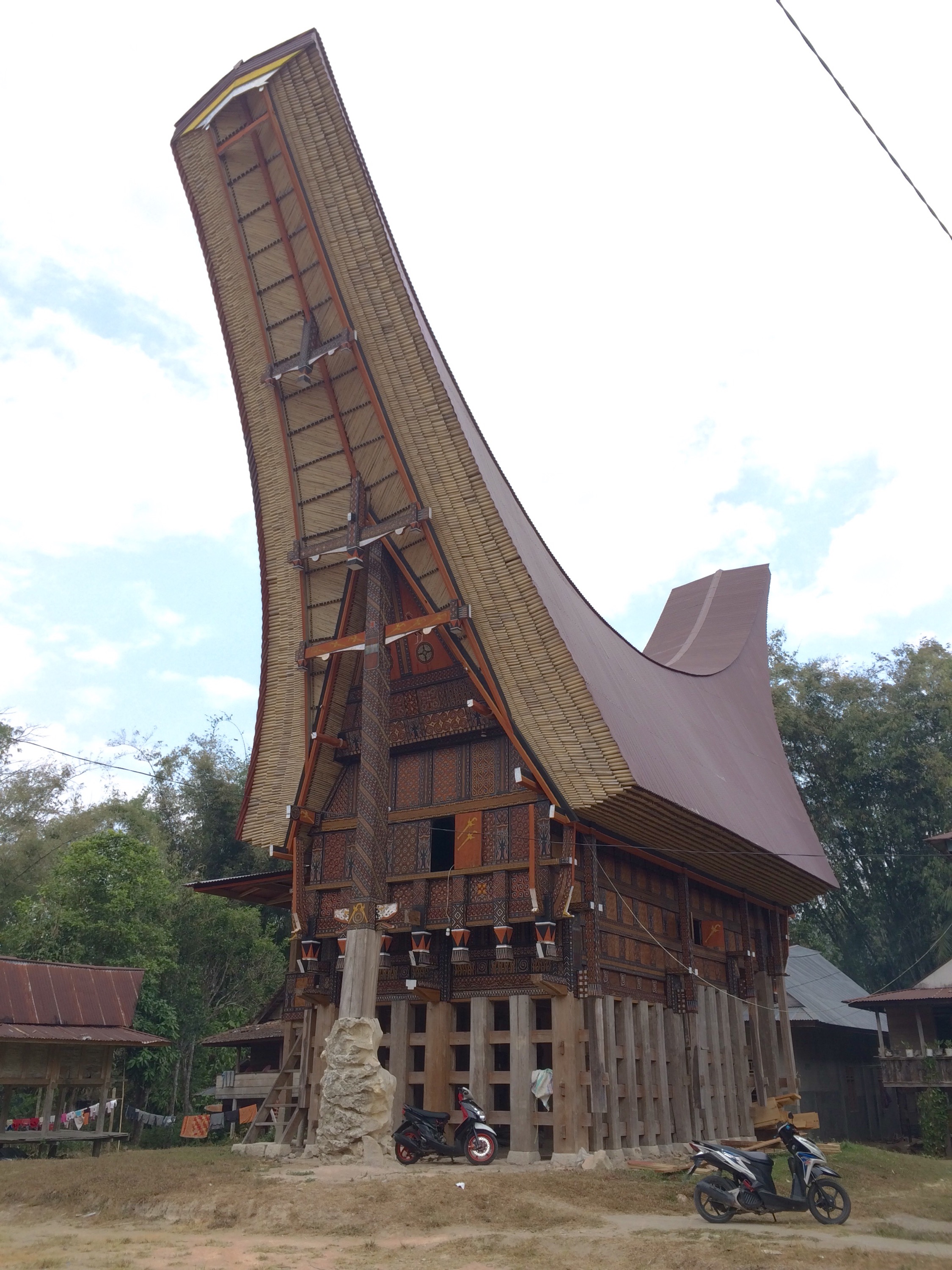 Davanti alle case toraja, il cui tetto segue lo stesso stile architettonico a forma di barca, si appendono le corna dei bufali sacrificati per mostrare il prestigio della famiglia. Basta immaginare la gara che si fa a mostrare quante più corna si ha!