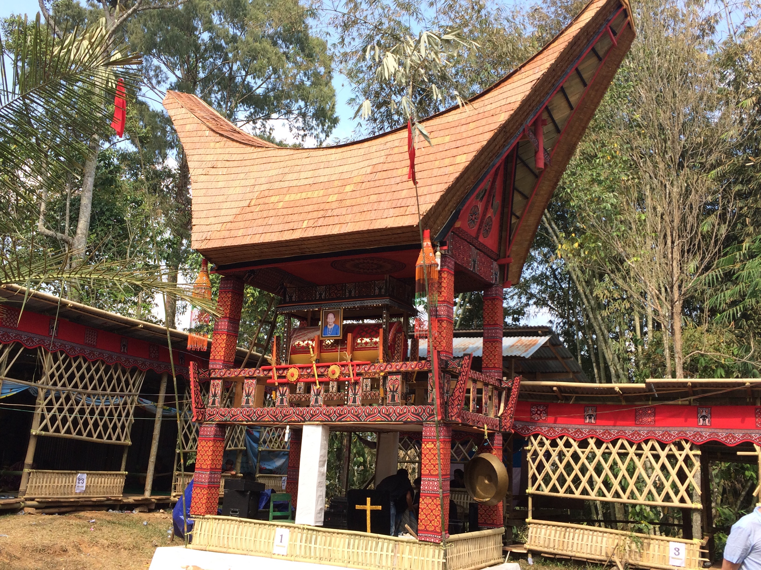 Le cerimonie funebri vengono celebrate con gioia e serenità da parte delle famiglie, oltre alla giornata dedicata alla mattanza dei bufali, le diverse funebri si protraggono per vari giorni e sono molto diverse fra di loro. Nel nostro caso, il giorno dopo la mattanza la famiglia si è riunita nuovamente per una breve messa e per seppellire la bara in un cunicolo scavato da gente specializzata nelle rocce, in modo da evitare atti di scialaggio (i toraja seppelliscono i morti con oggetti di valore e gioielli).
